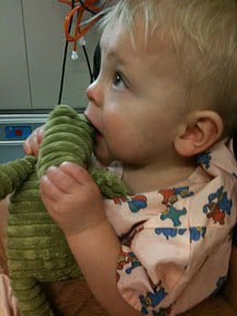 Devin had his myringotomy surgery today. The procedure went perfectly. The only difficult part was not feeding him this morning. He was one hungry baby by 9am!